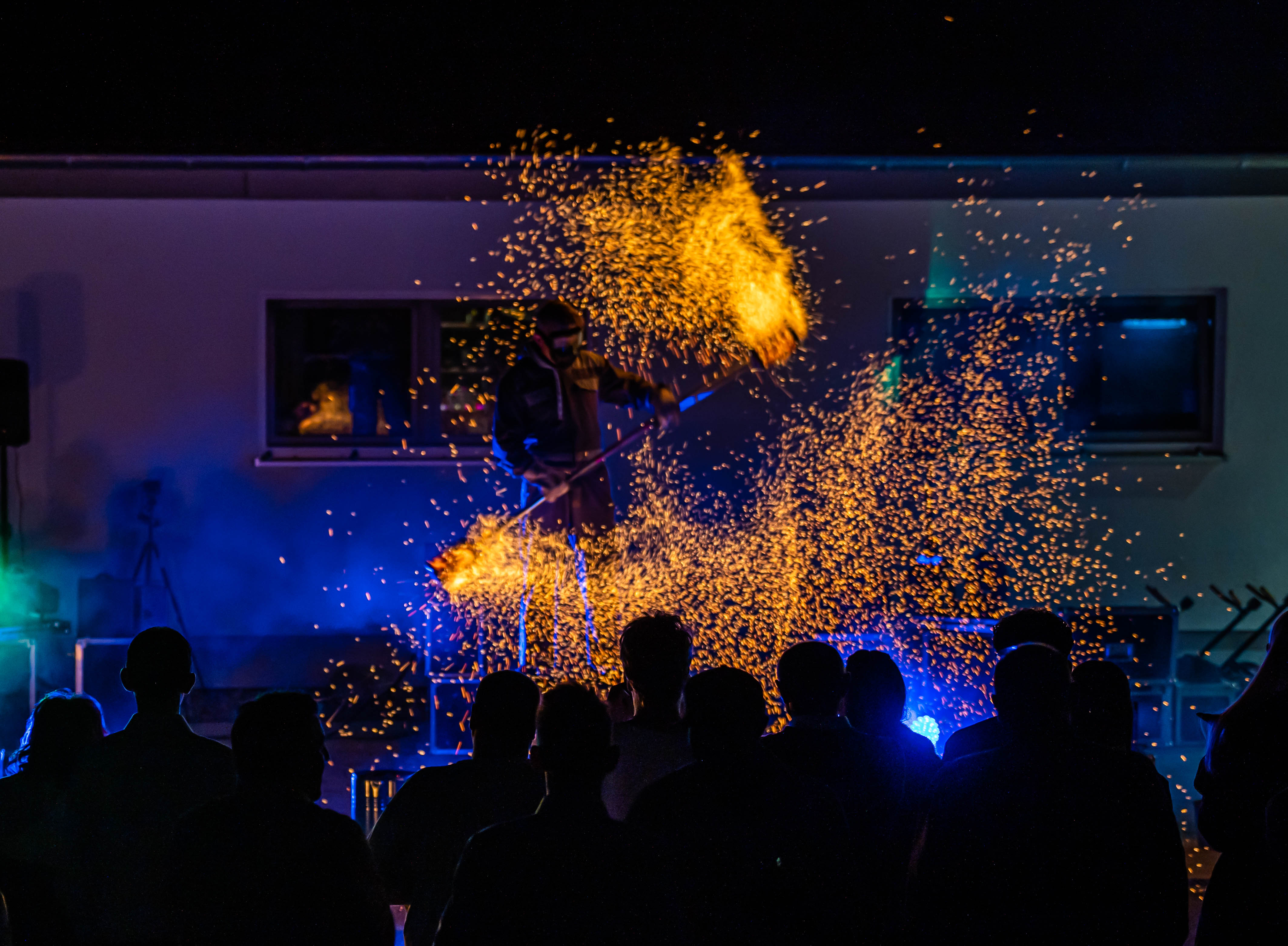 Für das Publikum wurde Industrial Fire zum emotionalen Höhepunkt des Abends. Die Gäste ließen sich von der Kombination aus Energie, Präzision und Leidenschaft mitreißen. Applaus, Begeisterung und leuchtende Gesichter spiegelten die Wirkung des Moments wider. Die Show schuf nicht nur Staunen, sondern auch Verbindung – genau das, was eine erfolgreiche Firmenfeier ausmacht: Teamgeist, gemeinsame Emotionen und bleibende Erinnerungen.