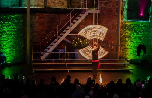 Ich hatte die Freude, den Weihnachtsmarkt in Bad Vilbel auf der historischen Wasserburg mit meiner Classic Fire Show zu bereichern. Auf der Bühne entstand ein Spiel aus Licht, Flammen und Bewegung. Funken sprühten in die Nacht, während die Jonglage mit brennenden Fackeln die Zuschauer in Staunen versetzte. Die Kombination aus klassischer Feuershow und perfekt abgestimmten Flammeneffekten schuf eine festliche, emotionale Atmosphäre.